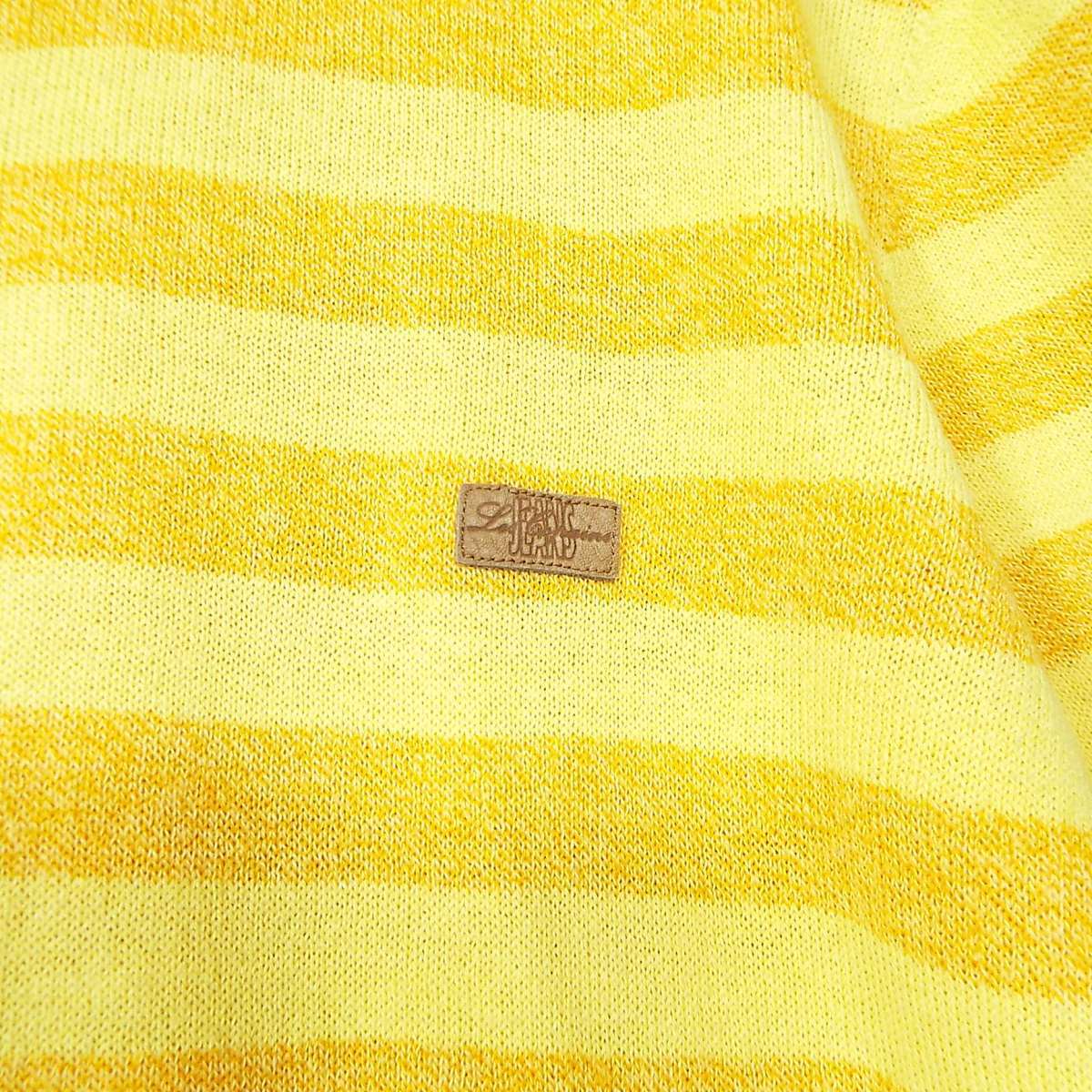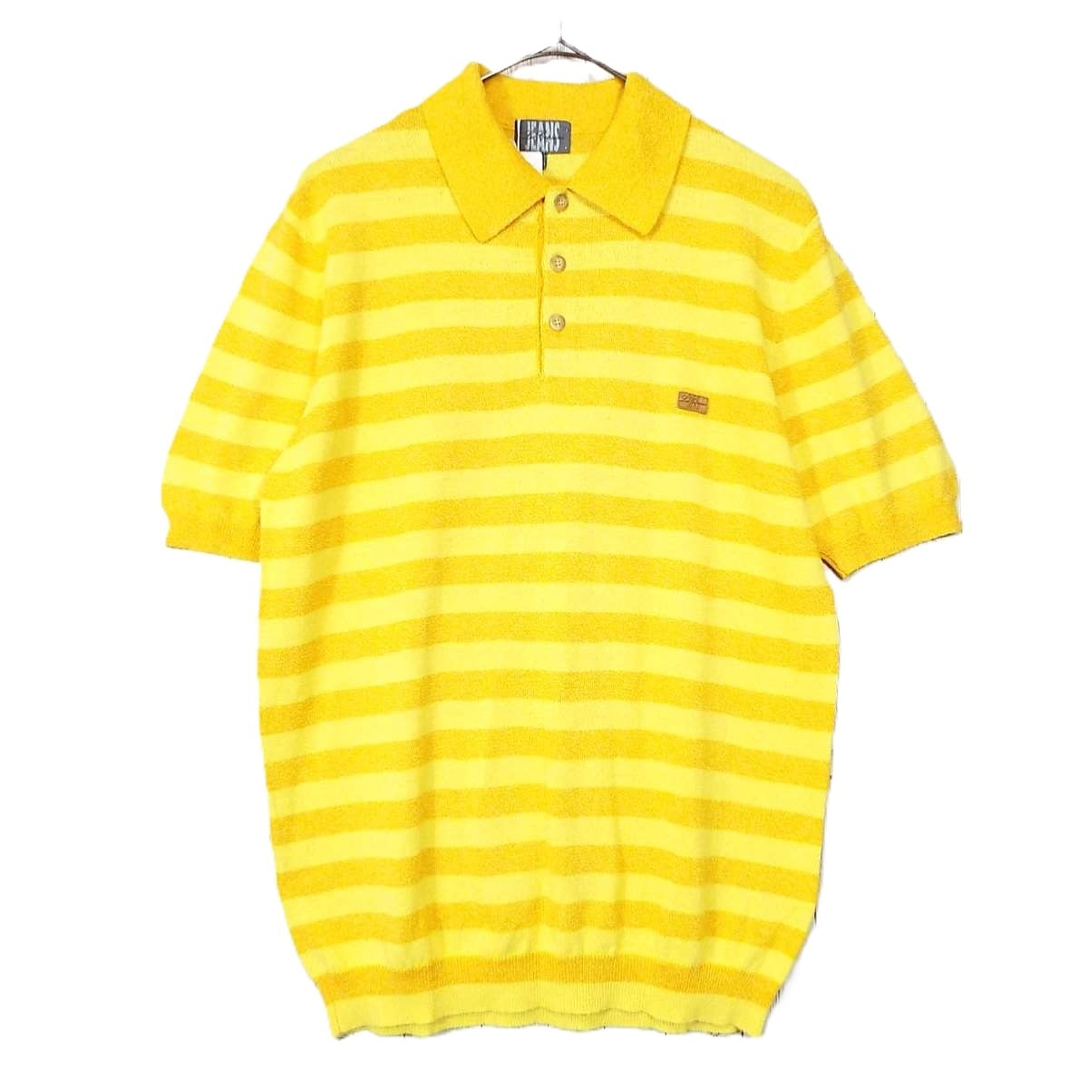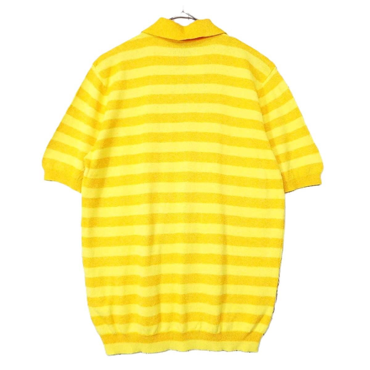 【真夏にも◎】イタリア製 レコパン( Les Copains)タオル地 ボーダー柄 半袖ポロシャツ|サイズ:46II(肩幅44cm)イエロー・オレンジ【湘南倉庫】メンズ古着 1234000000411