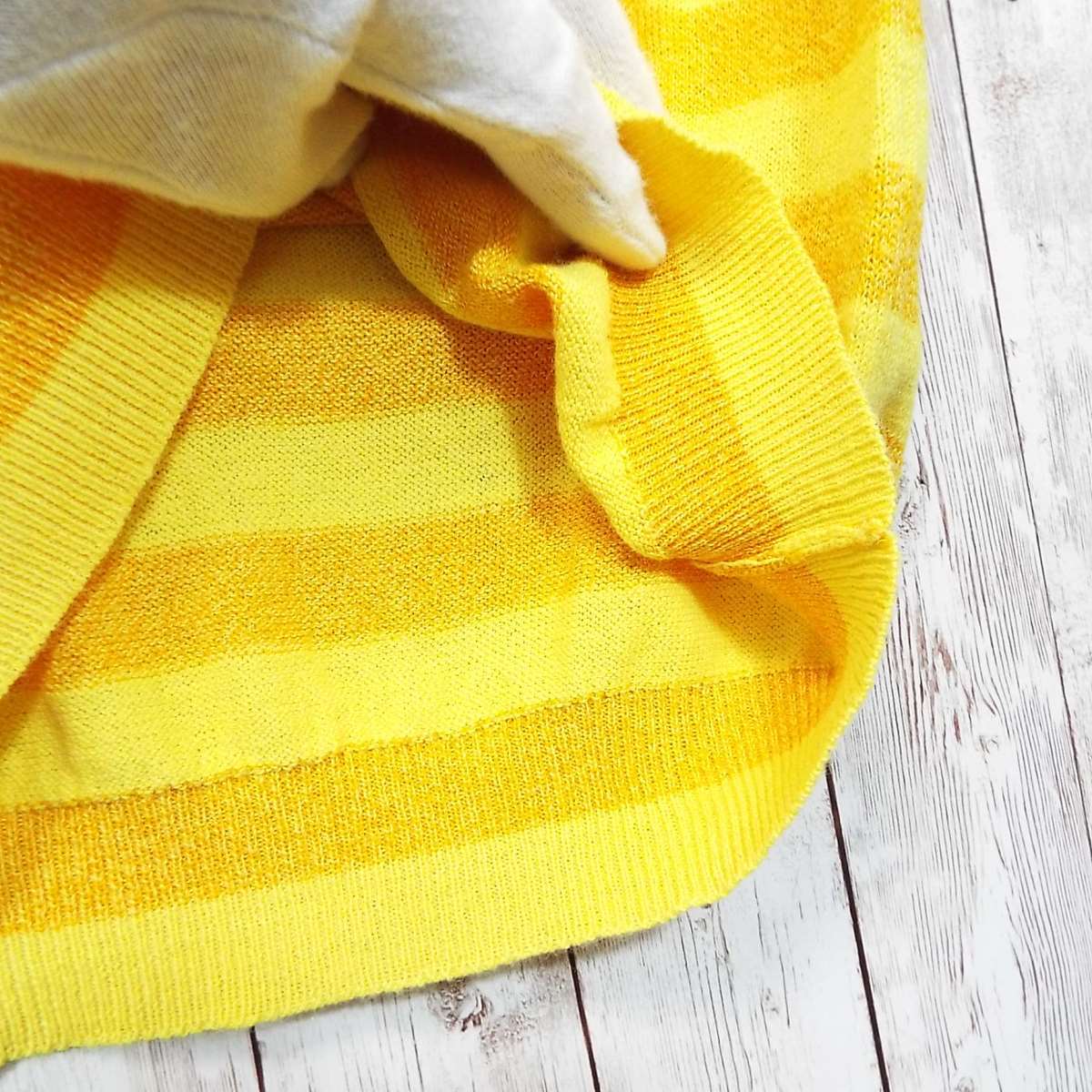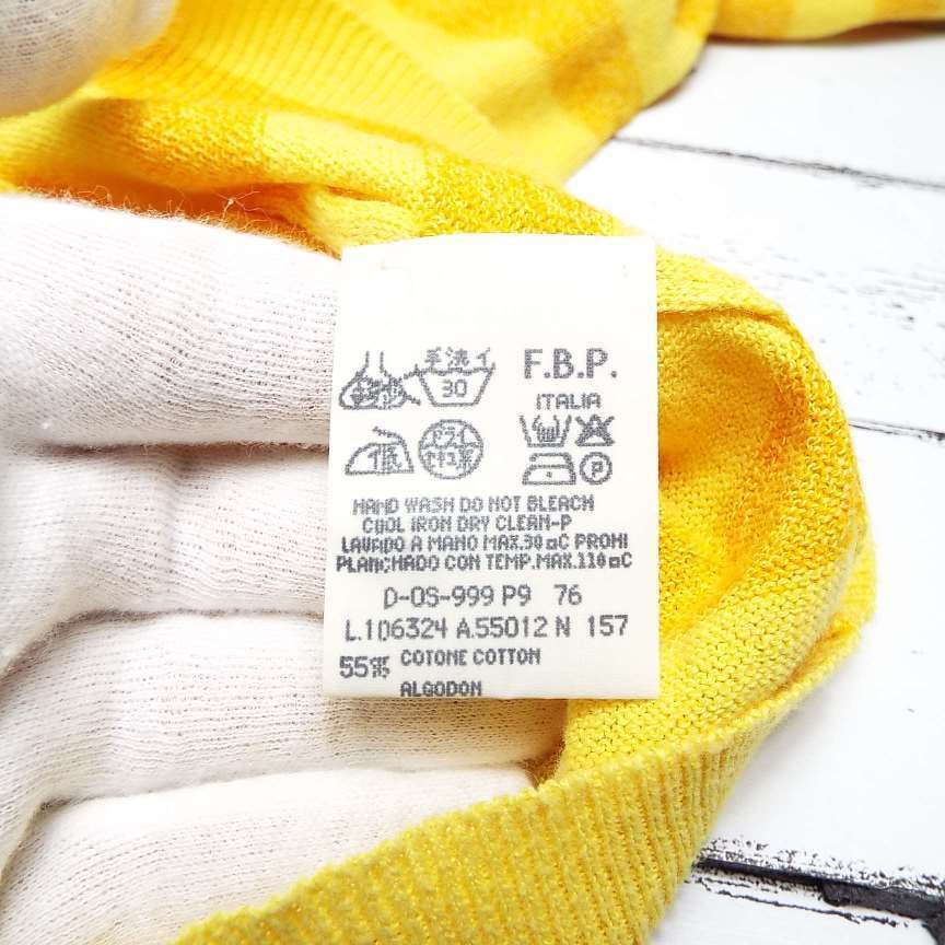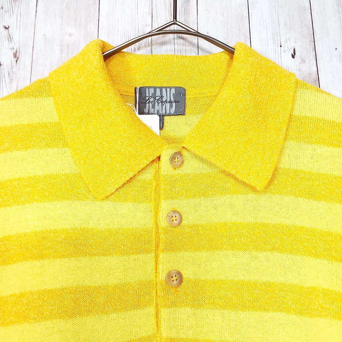 【真夏にも◎】イタリア製 レコパン( Les Copains)タオル地 ボーダー柄 半袖ポロシャツ|サイズ:46II(肩幅44cm)イエロー・オレンジ【湘南倉庫】メンズ古着 1234000000411