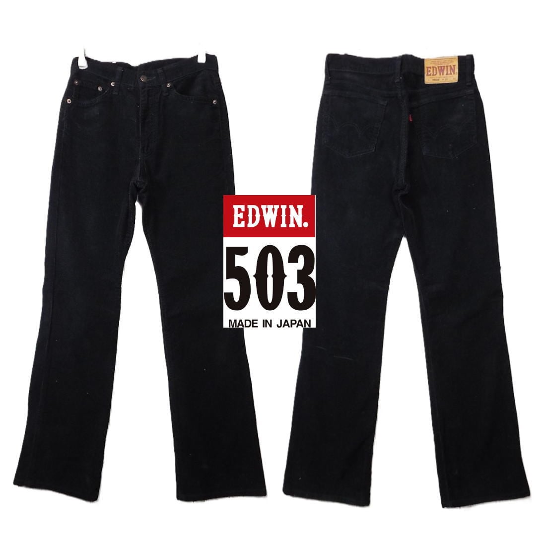 【脚長効果◎】EDWIN(エドウィン)503ZZ 5ポケット コーデュロイ レギュラー ジッパーフライ ストレート ボトムスパンツ W29(ウエスト76cm)ブラック コットン100%【湘南倉庫】メンズブランドフルギ