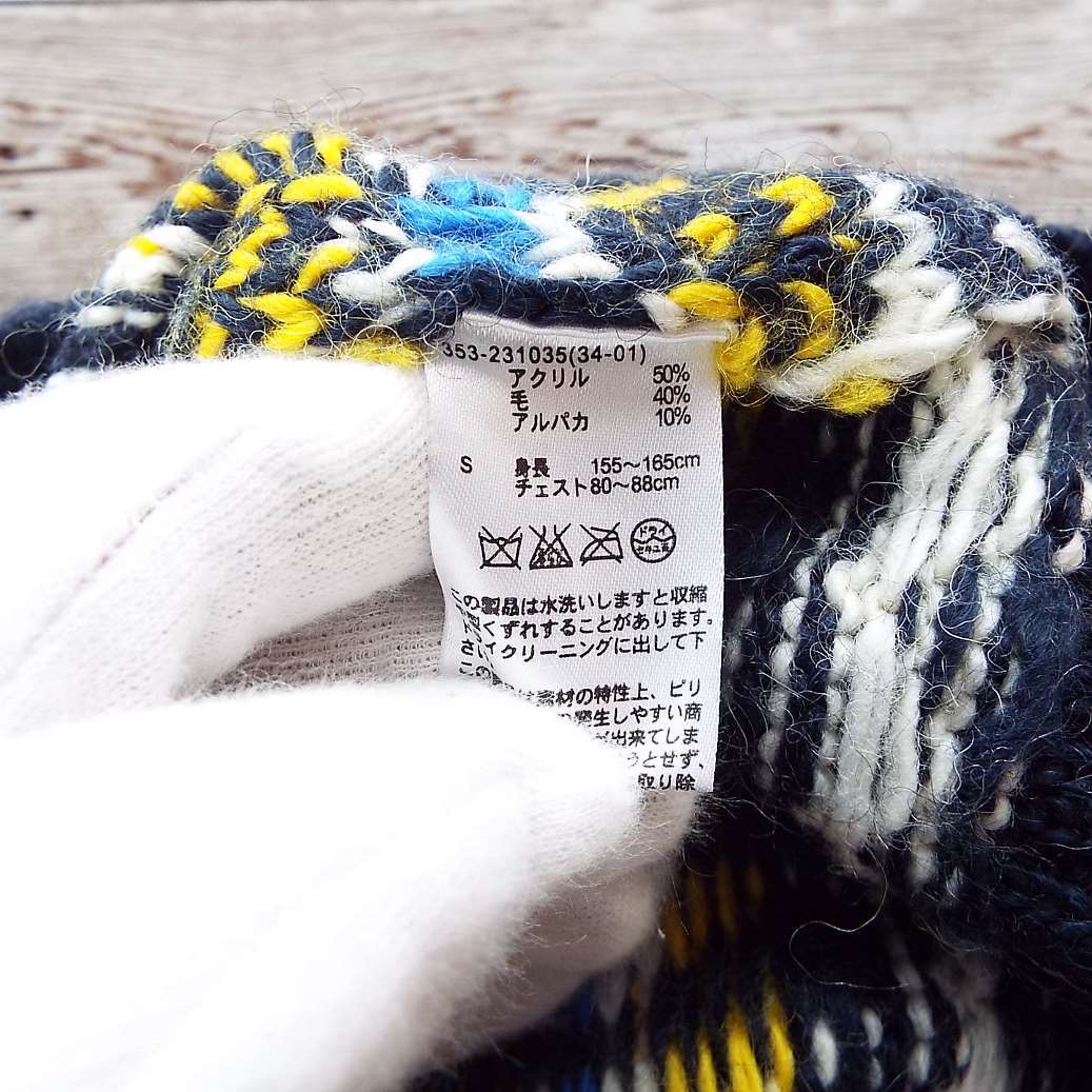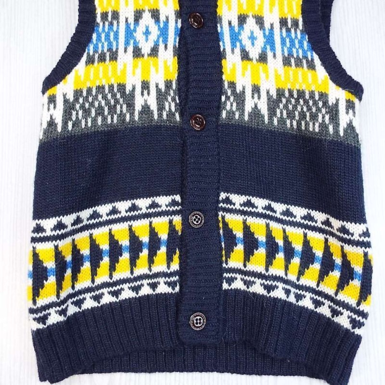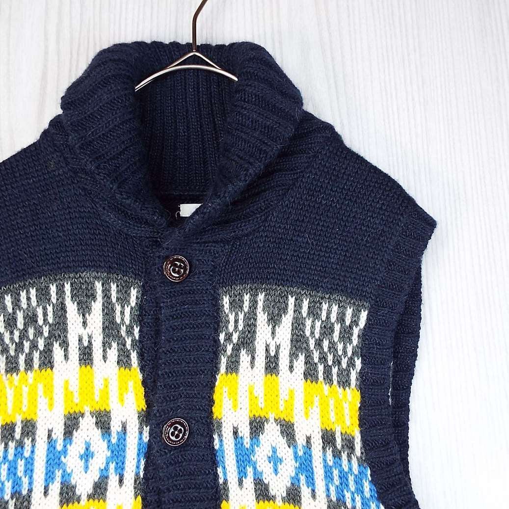 【ネイティブ柄】GU ジーユー カウチンニットベスト Sサイズ(肩幅38.5cm)ネイビー・イエロー【湘南倉庫】メンズ古着 ユニセックス 12346332 CJ3