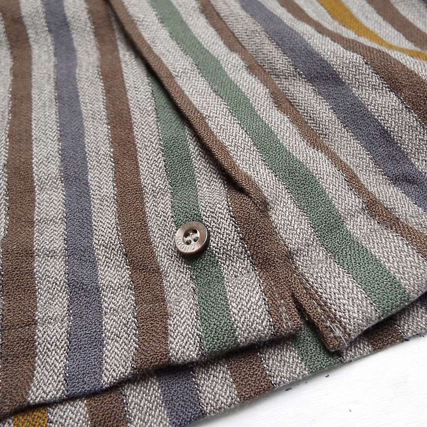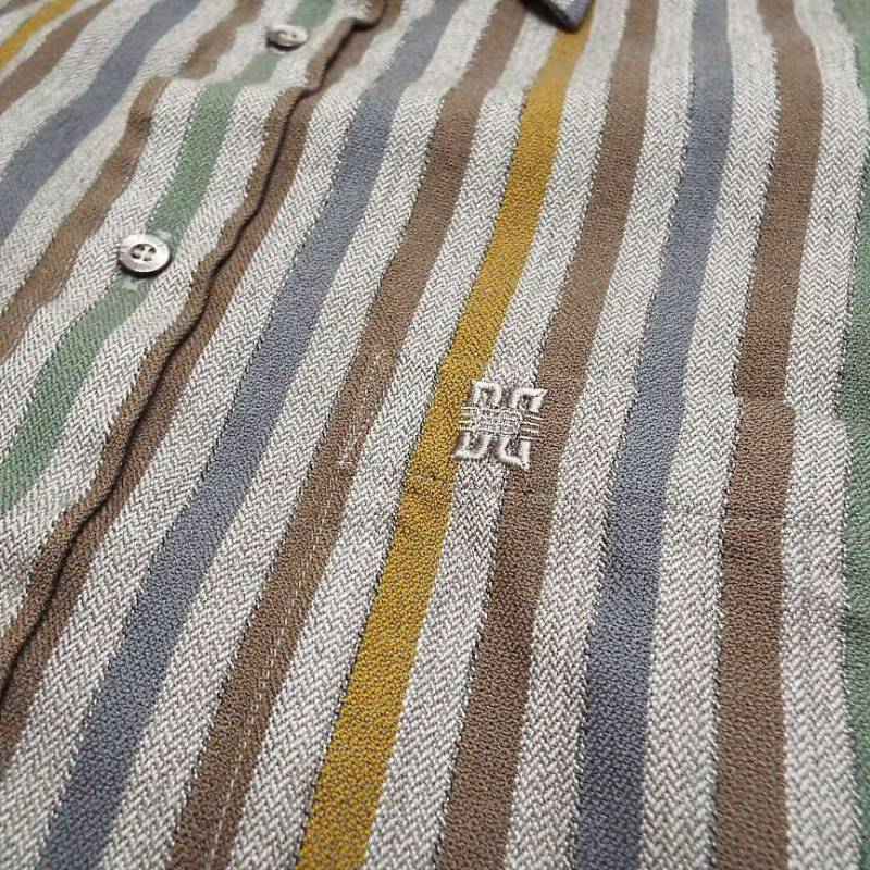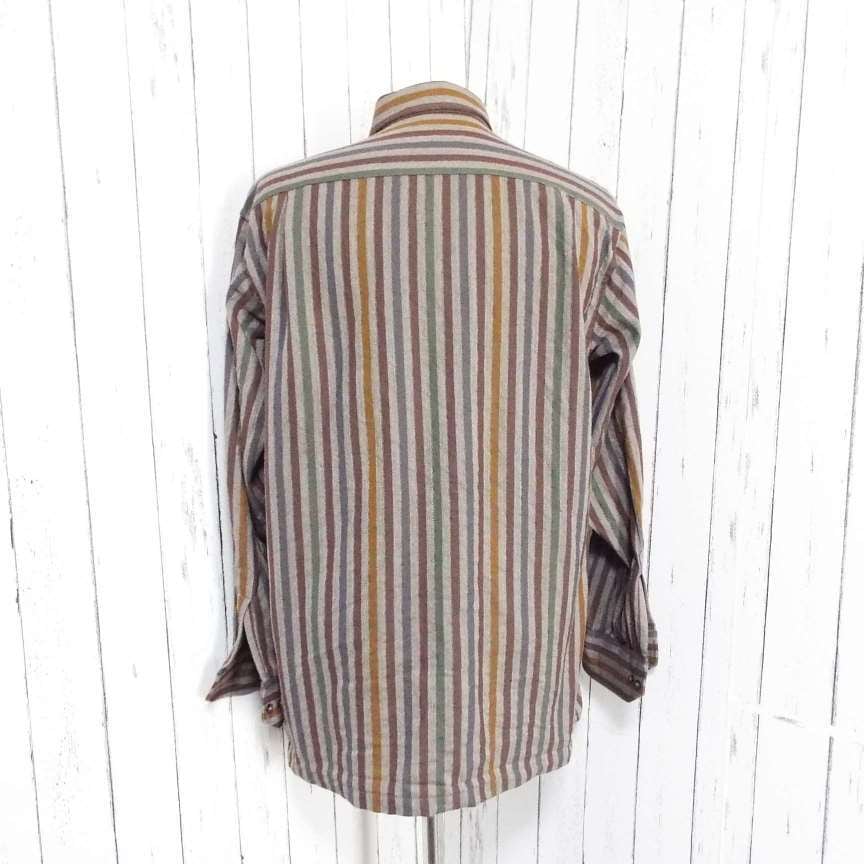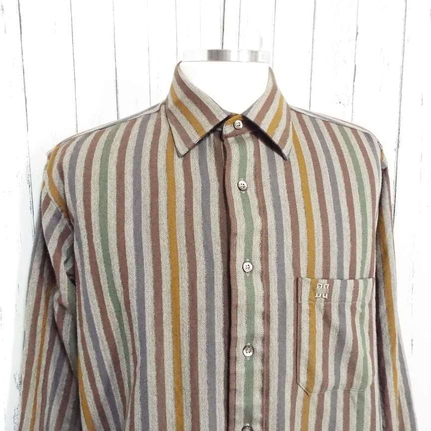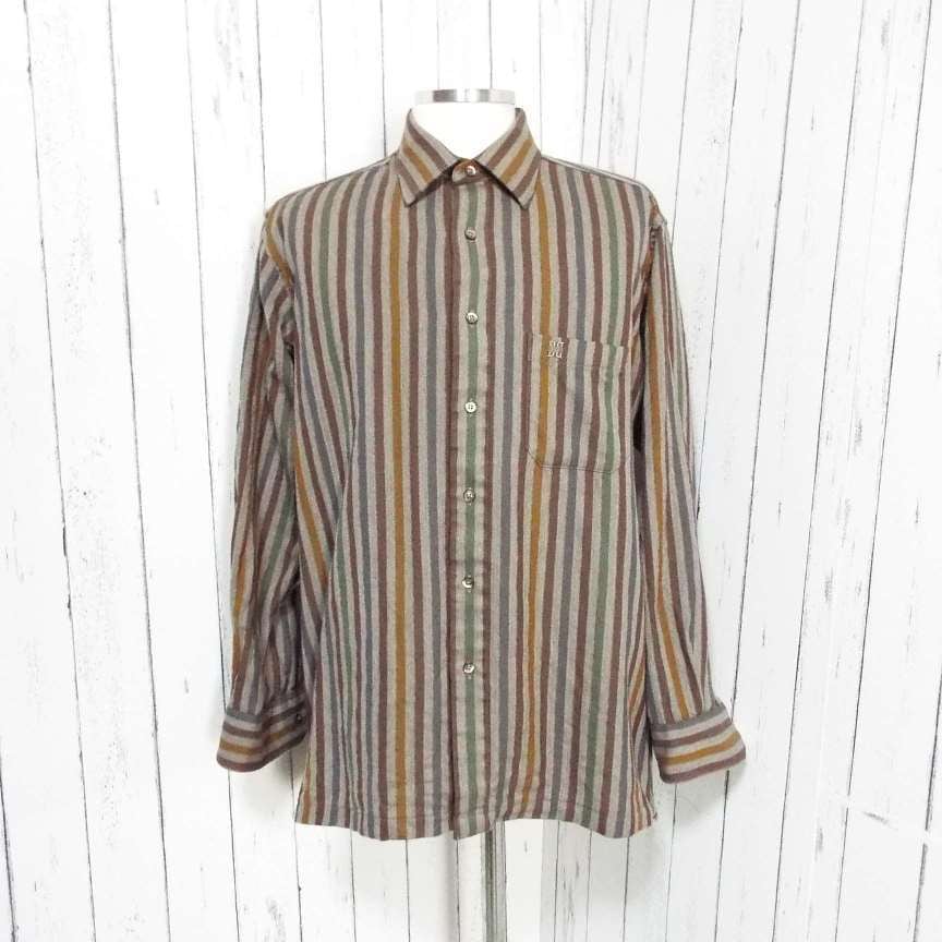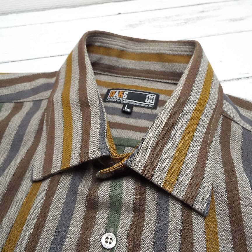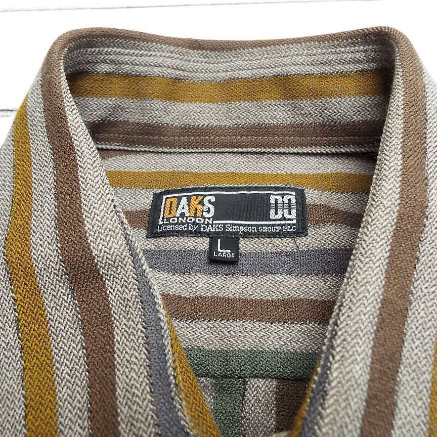 【肩幅46cm】DAKS(ダックス)刺繍ロゴ入り ストライプ柄 長袖シャツ|ブラウン・グレー系|サイズ:L|メンズ|USED古着
