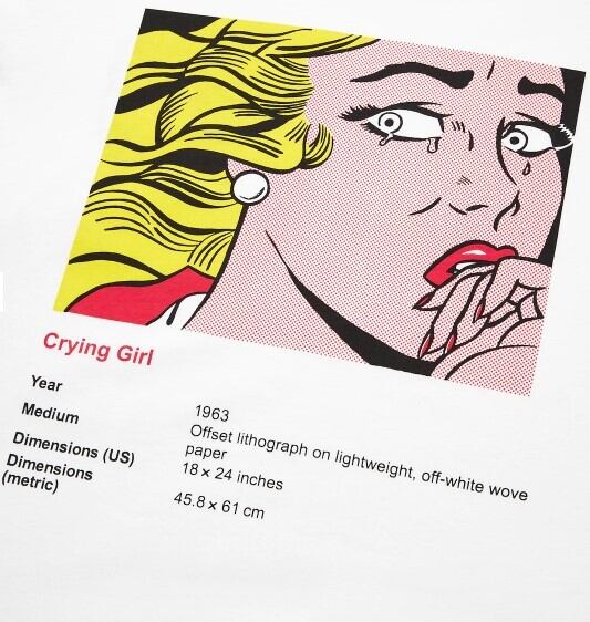 ・1963年 作品:Crying Girlフロントにはモノクロで胸プリントに、バックにはカラーで大胆にプリントし、同じ作品を2つのアプローチで再現した1枚。