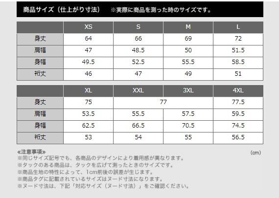 ※お持ちのTシャツと下記採寸を比較してお求めください。