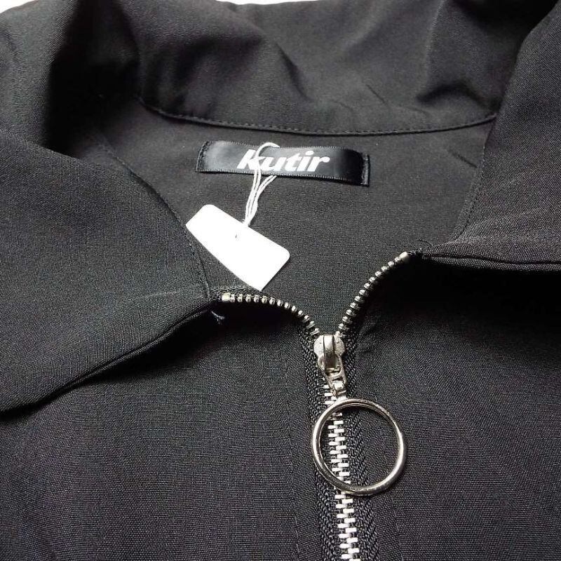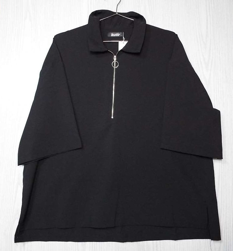 【肩幅65cm】クティール kutir 半袖 ハーフジップ プルオーバー 7分袖 開襟シャツ Lサイズ ブラック ポリエステル100%【湘南倉庫】メンズ古着 ゆるだぼ ビッグサイズ しわにならないシャツ