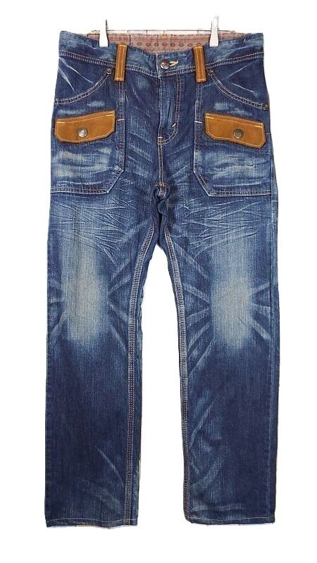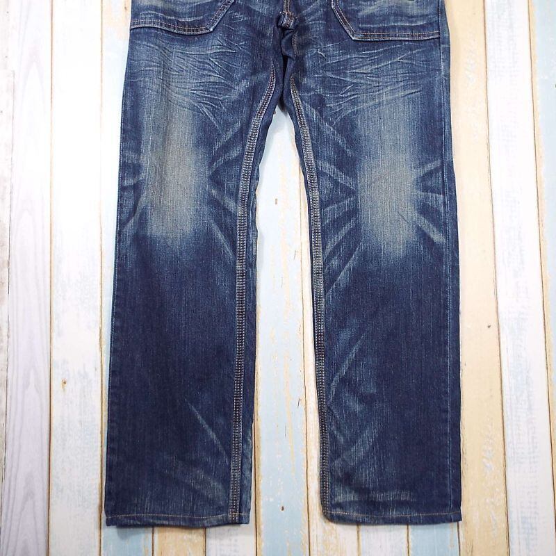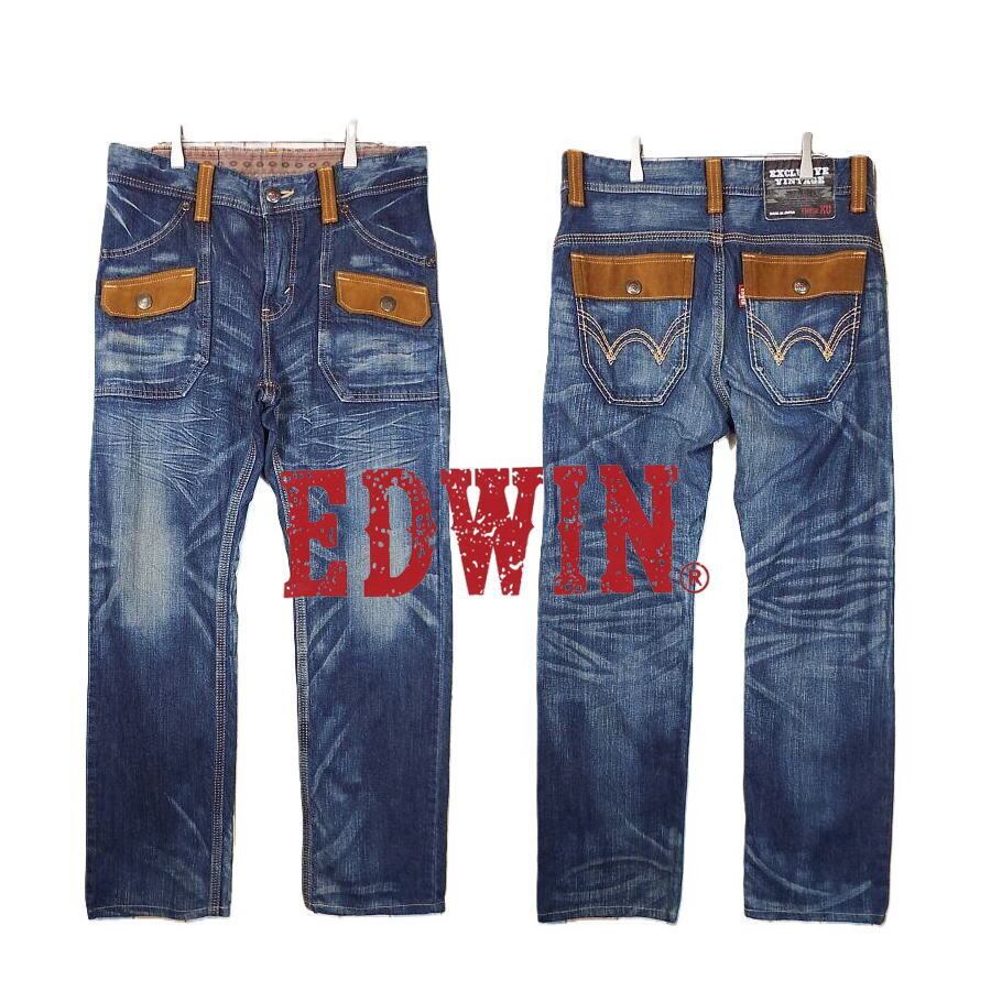 【ウエスト89cm】【エイジングデニム】日本製 EDWIN XU エドウィン ネイティブテイスト ジップアップ ヴィンテージ加工 インディゴ ジーンズ W32インチ コットン100%【湘南倉庫】ヒゲ・ハチの巣・シングルステッチ メンズ古着 ジーパン ストリートファッション