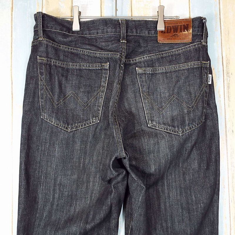 【ウエスト90cm】EDWIN403 INTERNATIONAL BASIC ブラック デニムジーンズ サイズ34インチ(ウエスト90cm)【湘南倉庫】チェーンステッチ 革パッチ メンズ古着 ジーパン