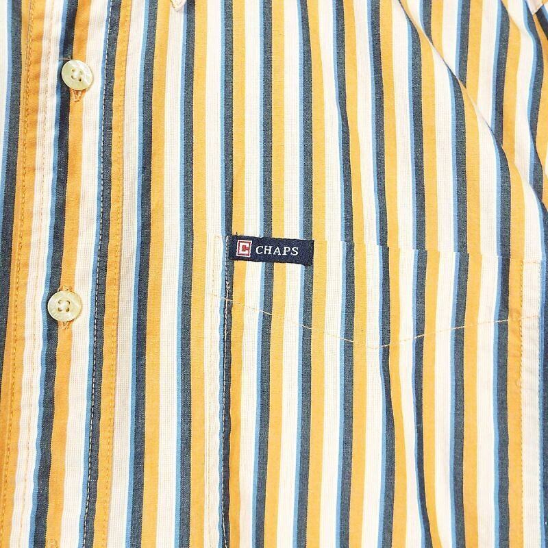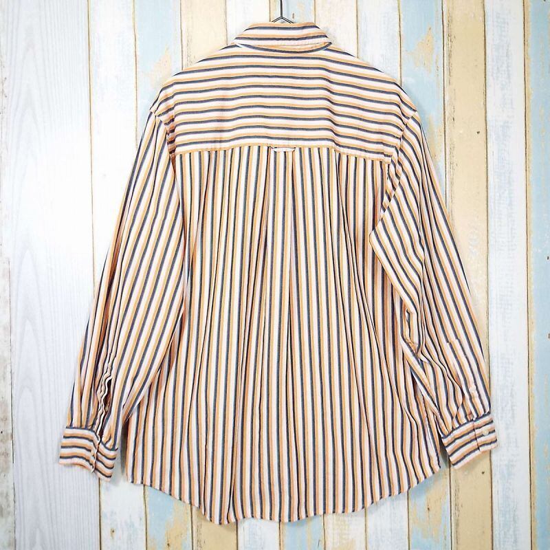 【CHAPS(チャップス)】ストライプ ボタンダウンBD 長袖シャツ Mサイズ オレンジホワイト橙白【湘南倉庫】USメンズ古着 ラルフローレン 17000260