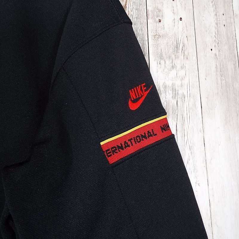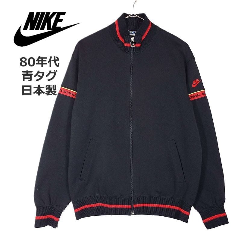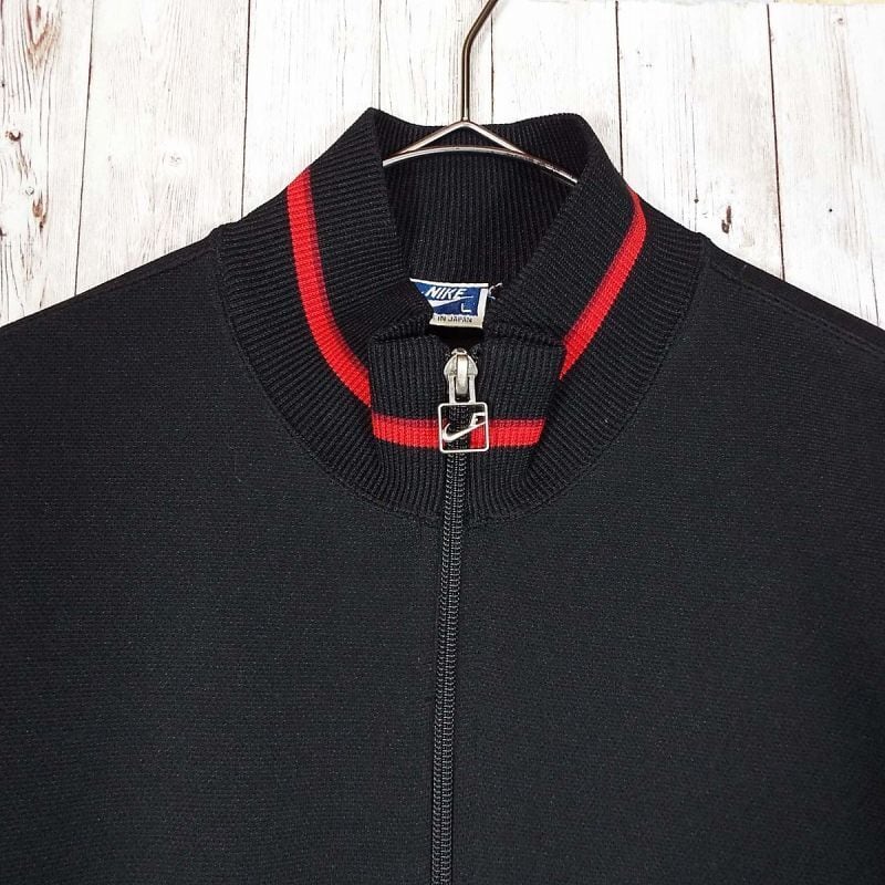 【80年代ヴィンテージ】 NIKE ナイキ トラックトップ ジャージ 刺繍ロゴ 青タグ 日本製 Lサイズ ブラックレッド【湘南倉庫】メンズ古着