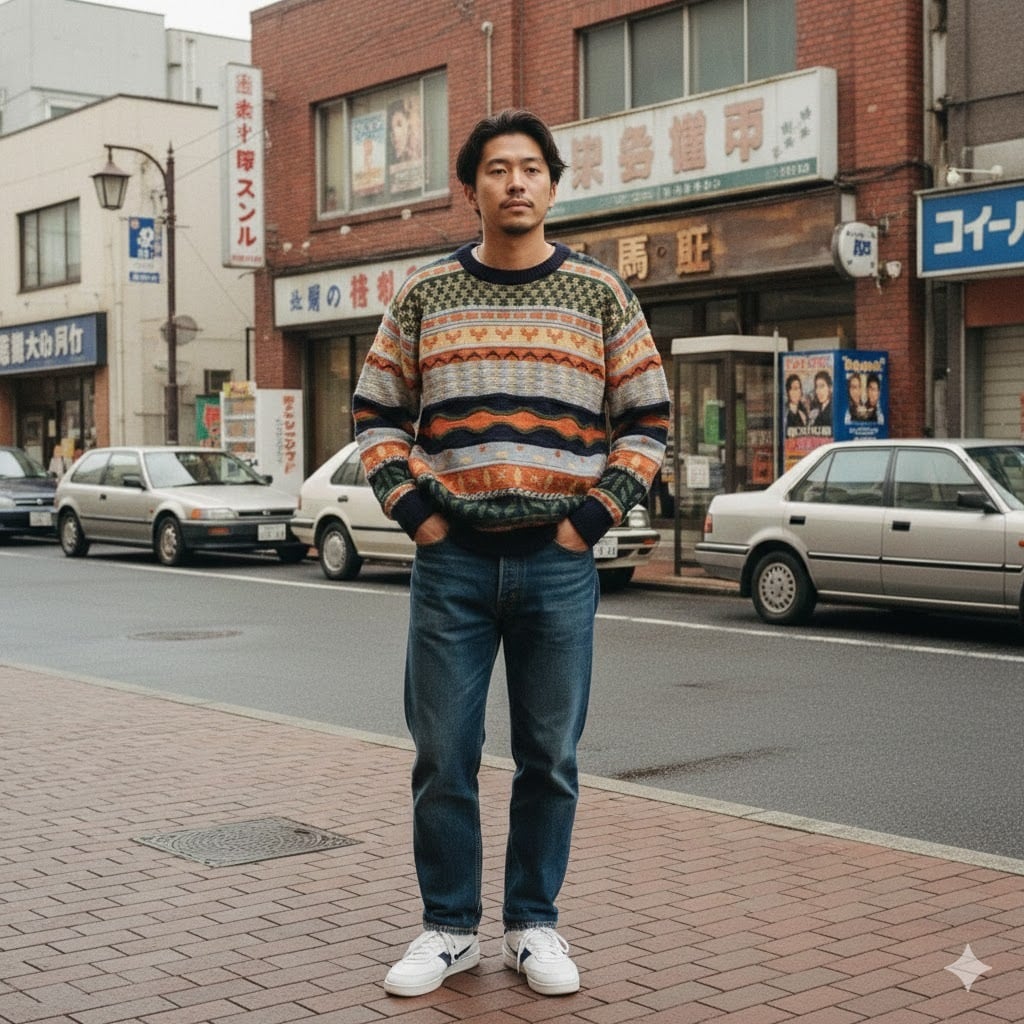 ・3Dデザインの素敵な90年代モノのおじニットです。